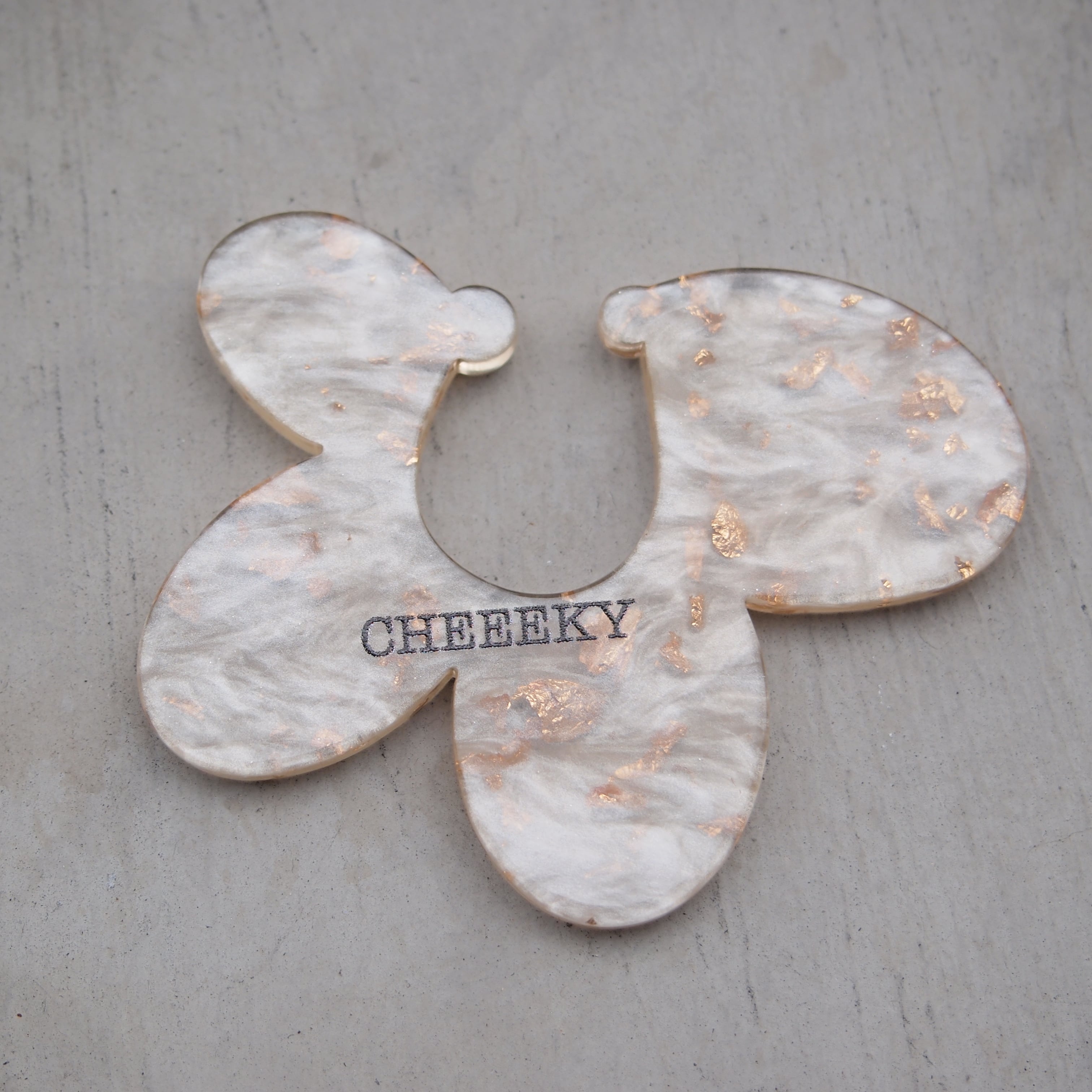 箔入りの大人イヤーカフ!! 半透明パール入りの箔入りアクリルがとにかく可愛いのに、 さらにフラワーの形が◎!! 隙間部分4ミリ 重さ4g 板の厚み3ミリ